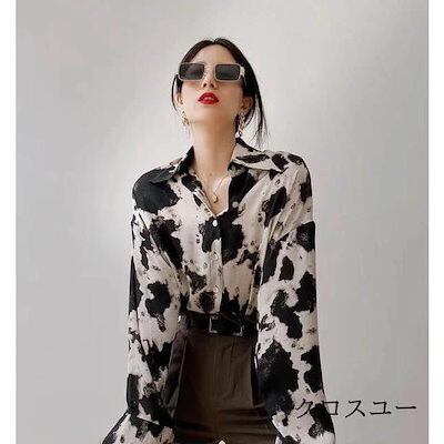 万能流行感 シフォンブラウス ヒョウ柄 シャツブラウス 襟付き ドロップショルダー ゆったり シフォン レディース