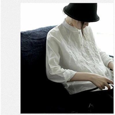シャツ ブラウス 綿 麻 レディース 長袖 白シャツ 刺繍 シャツ 花柄刺繍 シャツブラウス 夏 冷房対策 UVカット 羽織り ゆったり 体型カバー リネン