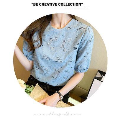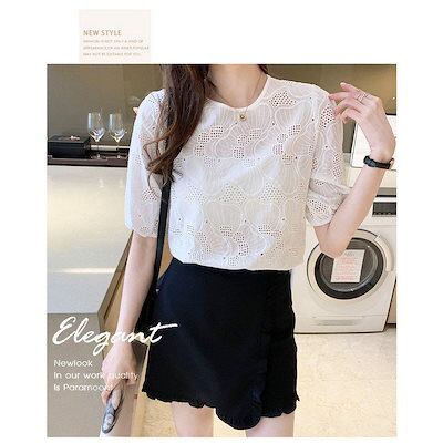 ブラウス レディース きれいめ 40代 春夏新作 オシャレブラウス 白レースシャツ 半袖トップス パフスリーブブラウス 大人 通勤 ゆったり シャツ 韓国風