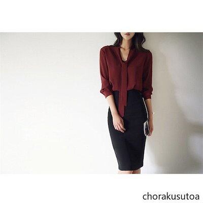 シャツ ブラウス レディース とろみシャツ 長袖 Vネック 無地 リボン ゆったり シフォンシャツ 着痩せ おしゃれ 通勤 OL 春 夏 秋