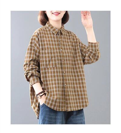 シャツ レディース 長袖 ギンガムチェック シャツ 大きいサイズ トップス 春秋 ゆったり カジュアル 柔らか 仕事 通勤 ベーシック 着?せ ナチュラル 着まわし 送料無料