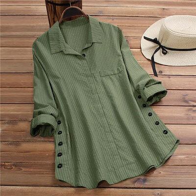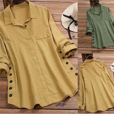シャツ レディース 長袖 ロング ドロップショルダー ゆったり 大きいサイズ 襟付き 春秋 ブラウス トップス 羽織もの