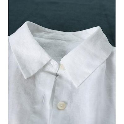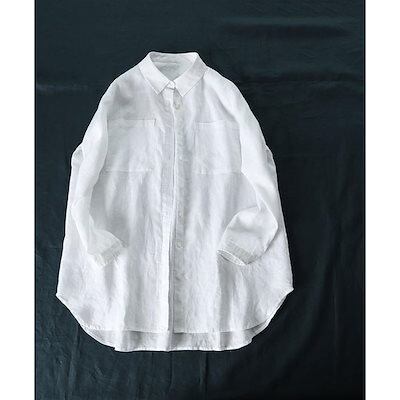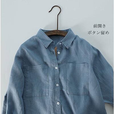 シャツ 長袖 ブラウス リネン 立ち襟 レディース シャツブラウス 前開き 長袖シャツ ボタン留め ポケット有り 体型カバー トップス ゆったり