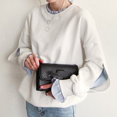 パーカー ゆったりスウェットレイヤードトップス秋新韓国ファッションビッグサイズ上着レイヤードトップス マウンテンパーカー