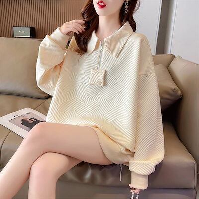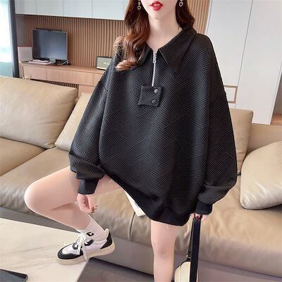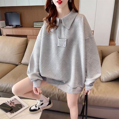 パーカー ゆったりスウェット秋 韓国ファッション 薄手タイプのスタイリッシュなシンプルファスナー開襟トップス マウンテンパーカー