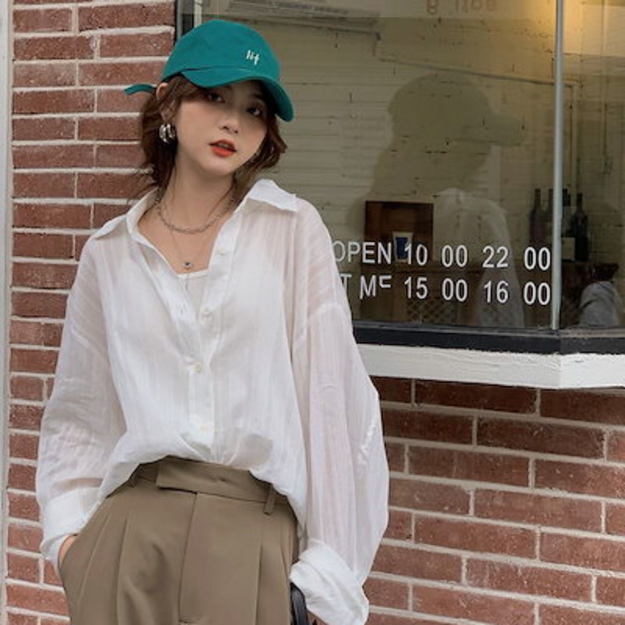 シャツ 韓国ファッション 新作 薄手デザイン ホワイト 長袖ヴィンテージ着痩せ トップス シースルートップス ブラウス