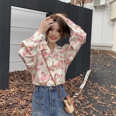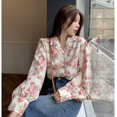 シャツ 秋新作 フレンチレトロ花柄シャツ春のスーツ襟バラのシャツ トップス シースルートップス ブラウス
