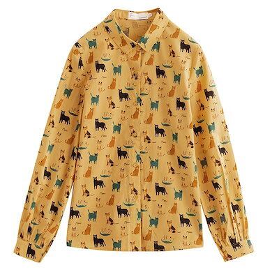 シャツ 秋の長袖シャツ女2023秋のレトロプリント長袖シャツトップス トップス シースルートップス ブラウス