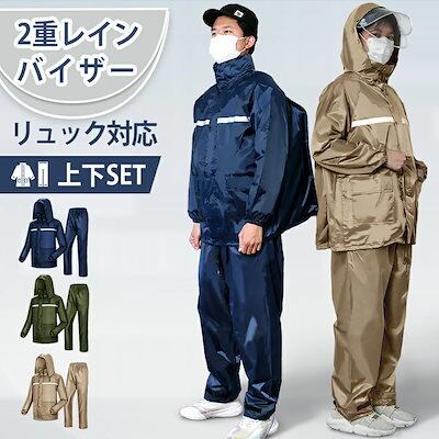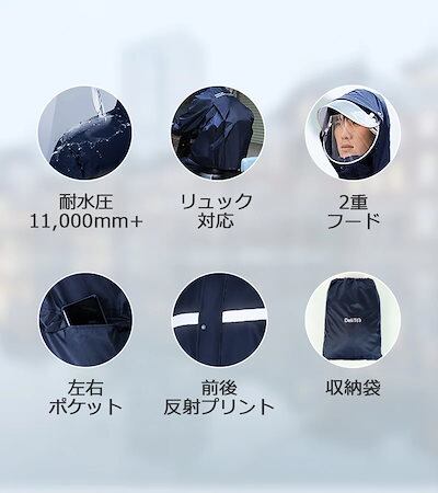 DeliToo収納袋付き! レインウェア 上下セット レインスーツ 自転車用レインコート リュック対応 超防水 超撥水 レインウェア バイク ポケット付き 反射プリント 梅雨対策 男女兼用 屋外作業 メガ割