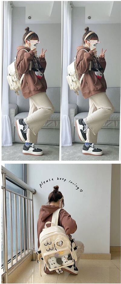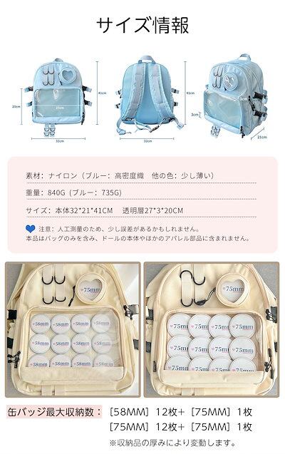大容量痛バッグ リュック リュックサック 大きめ おしゃれ デイパック 通学通勤 可愛い 透明ポケト