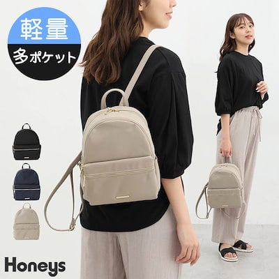 Honeys軽量多ポケットリュック リュック 鞄 レディース 黒 軽量 シンプル 大人可愛い 多ポケット