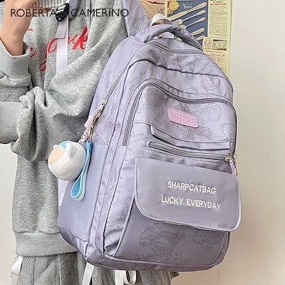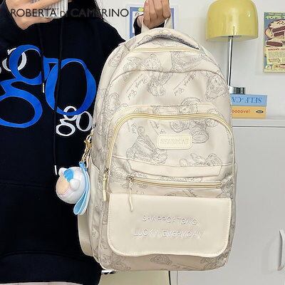 今すぐ欲しい!バックパック 韓国版2025 大容量 バック通学かばん女性中学生シンプルな何百もの印刷ニッチデザイン新しいコンピュータバックパック潮 orange