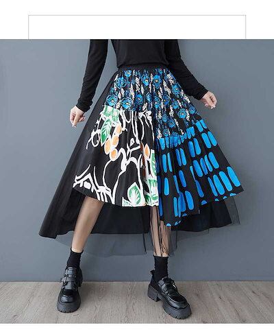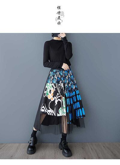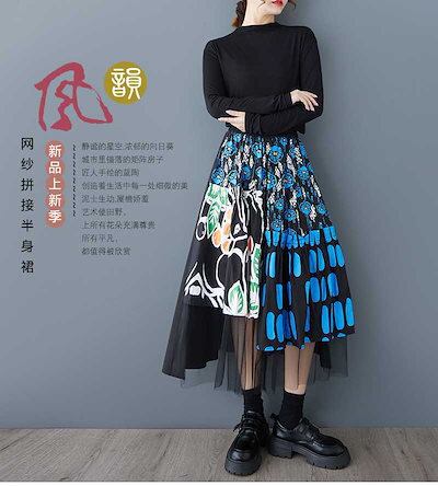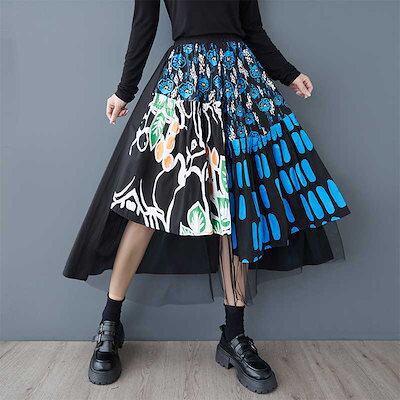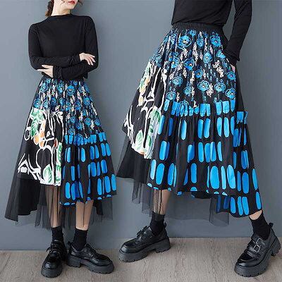 「ファットガール」 2025春 蝶スカート おしゃれ 綺麗 チュールドッキング 大きいサイズ 体型カバー レディース 花柄 スカート メガ割