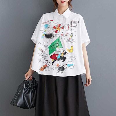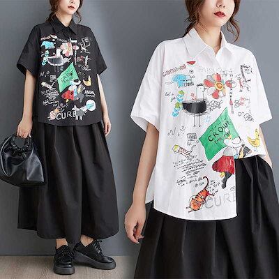 「ファットガール」 2024夏 レトロ ブラウス 大きいサイズ 体型カバー レディース シャツ メガ割