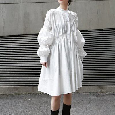 Tシャツ 韓国 カットソー シフォンブラウス プリーツスカート ワンピース 春夏 長袖 シャツワンピース 個性デザイン チュニック イレギュラーデザイン ゆったり 綿 着やせ おしゃれ ランタン袖