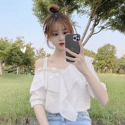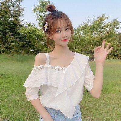 夏新作 オフショルダー トップス レディースファッション 可愛い シフォンブラウス 半袖tシャツ