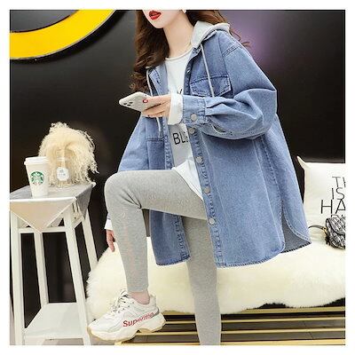 メガ割り デニムジャケット レディース Gジャン ジージャン デニムジャンパー ブルゾン 羽織 デニム 長袖 フード付き ドロップショルダー