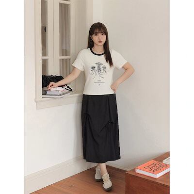 韓国版ハイウエストボウタイビスチェスカートゆったり万能スカート