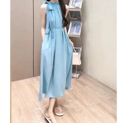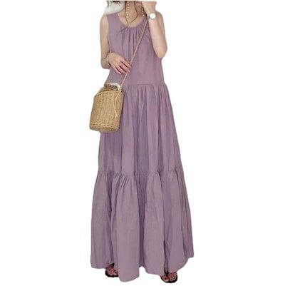 ヘビロテ!キャミワンピース日韓 2025夏 新作 キャミワンピース ロング フレア 接触冷感おしゃれ 気質 ノースリーブ切り替えスリム見え体型カバーロングタイプワンピース