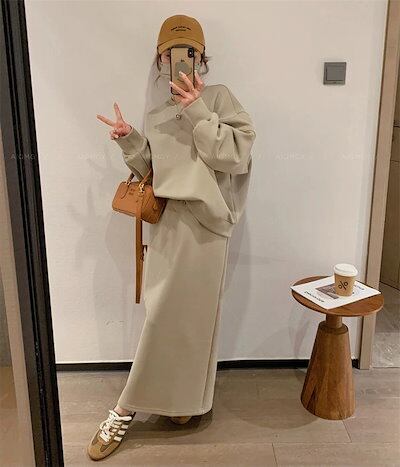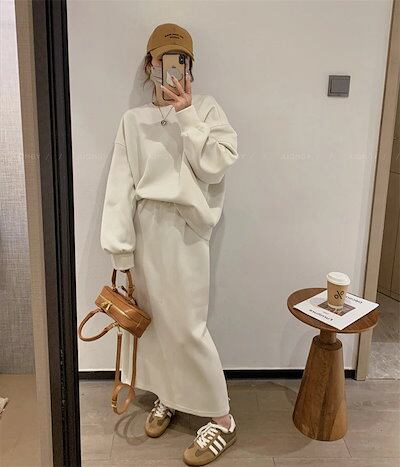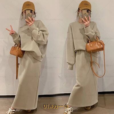 話題沸騰!セットアップ レディース 初春 ロングスカート+厚手スウェット 春秋 今最旬のセット 高級 怠惰な風 人気ニット二点セット 上下セット 韓国ファッション