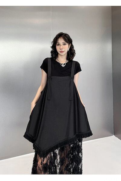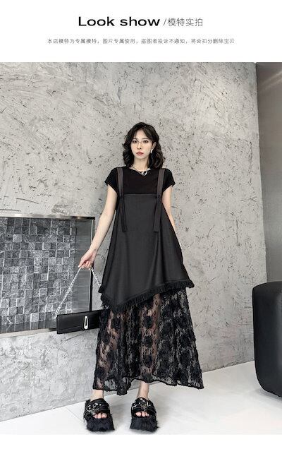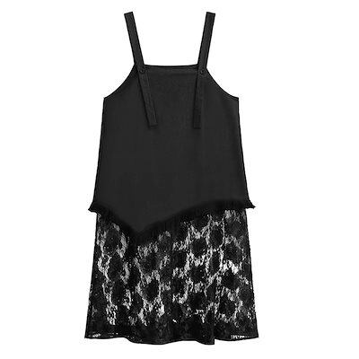 【J.Fashion】 デニムドッキング レースワンピース 夏 調節キャミ付き ゆったり レディース ロングワンピース