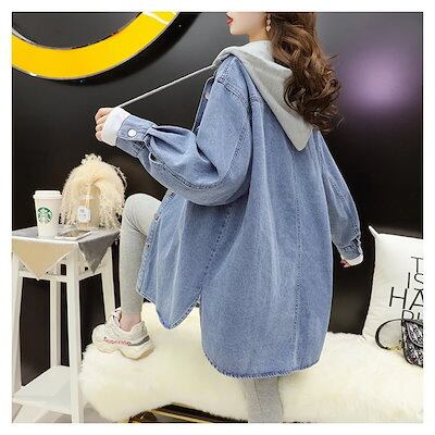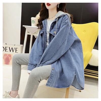 デニムジャケット フード付きミディアムレングスデニムジャケット女性2025春と秋の新しいルーズなジャケットの韓国語バージョン