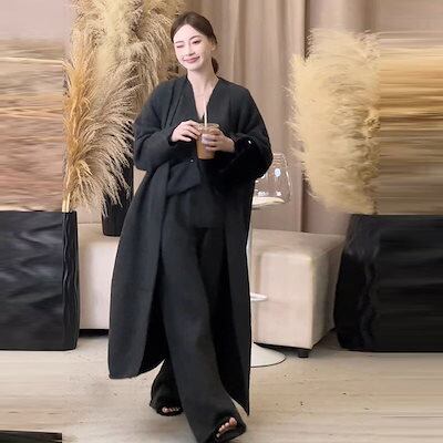 【国内迅速発送!】新品【本日限定】秋冬 新作 3点セット セーター ワイドパンツ セットアップ りのいい生地 上下レディースセットアップ ニットカーディガン 柔らかで肌触 スカートニット セッ