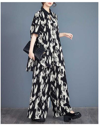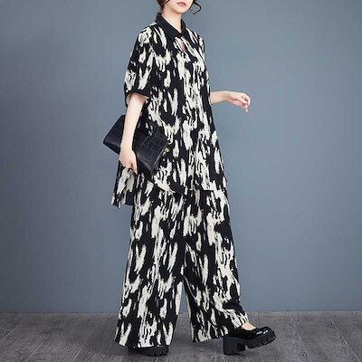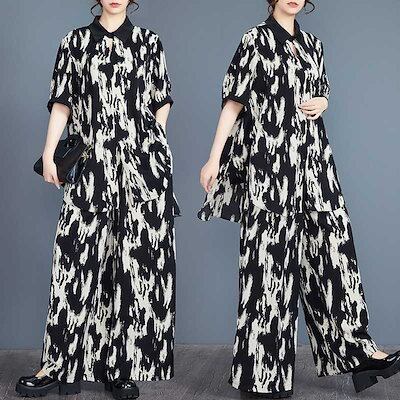 「ファットガール」 2024夏 上下セット 大きいサイズ 体型カバー レディース ワイドパンツ セットアップ メガ割 2