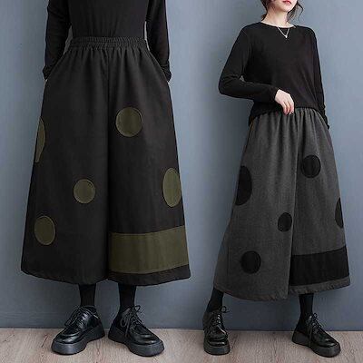 「ファットガール」 2024秋新品 ワイドパンツ ゴム 水玉 大きいサイズ 体型カバー レディース キュロットスカート メガ割
