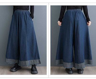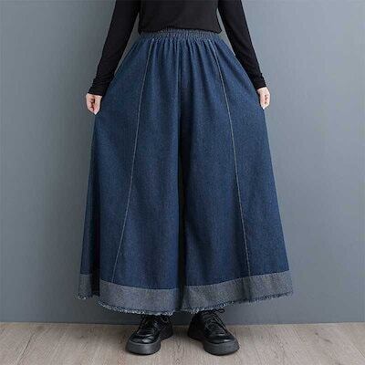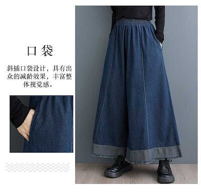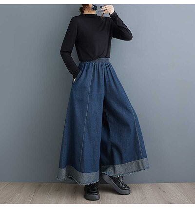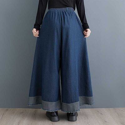 「ファットガール」 2024秋新品 デニムワイドパンツ キュロットスカート 大きいサイズ 体型カバー レディース ゴム ジーンズ メガ割