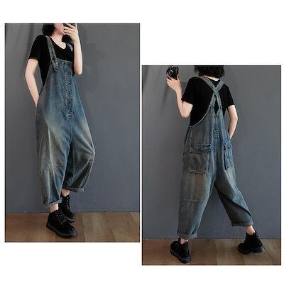 「ファットガール」 秋 デニムサロペット ワイドパンツ オールインワン 大きいサイズ 体型カバー レディース サロペット メガ割