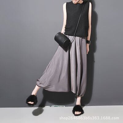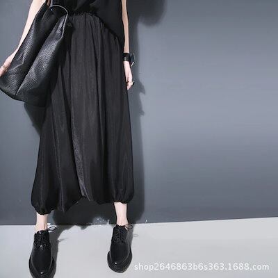 【J.Fashion】 シルクタッチ 夏 九分丈 キュロットスカート ワイドパンツ ハイウエスト ゴム サルエルパンツ レディース 薄手 スラックス メガ割