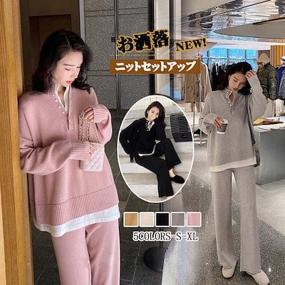 【2枚購入で 2oo円OFF!】新作 おしゃれ シンプル レディースセットアップ セーター ワイドパンツ 二点セット 気質 セット ニットセットアップ