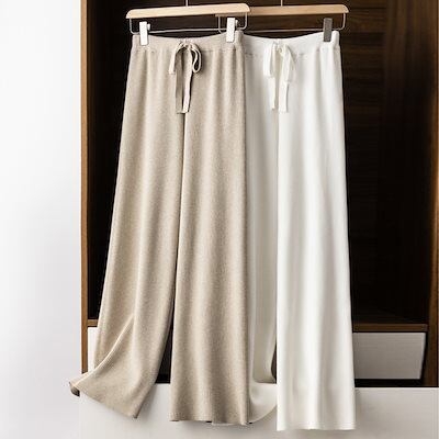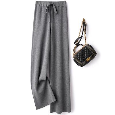 【2枚購入で 3oo円OFF! 】ニットロイワイドパンツ タイプ レディースパンツ カジュアル ラシャズボン ズボン 九分丈パンツ ストレートパンツ 韓国 脚長効果!スキニーパンツ ひんやりボトムス