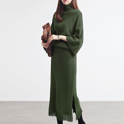 【2枚購入で 2oo円OFF! 】上下レディースセットアップ ニット アウター 二点セット ベーシックニット 秋冬 新作 おしゃれ 気質 セーター ワイドパンツ セットアップ 通勤 長袖セーター 福袋