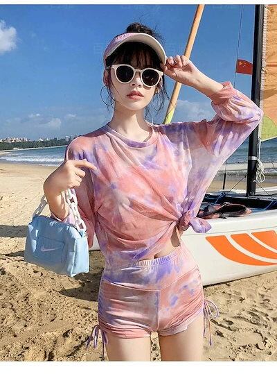 2025春夏新作 水着レディース ビキニ 水着 スポーツ水着 紫外線対策 3点 セット 高校 日焼け防止 大きいサイズ