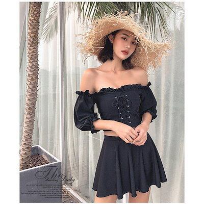 水着 水着 人気 ミニスカート レディース 2点セット 新品 スイムウェア セパレート レースアップ 2025 ビキニ オフショルトップス オフショルダー 大 仕様 スイミング 体型カバー