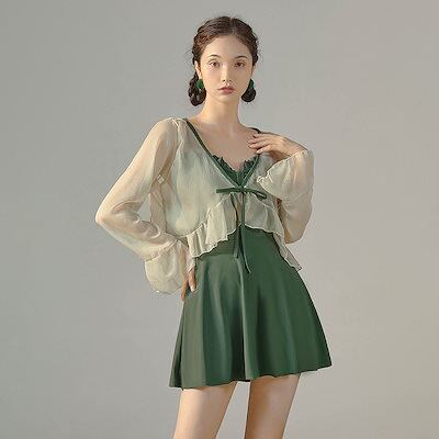 2025 春夏 水着 パッド付き 体型カバー 3点セット 小胸 バンドゥ 旅行 水着 レディース 体型カバー