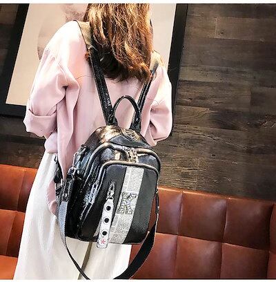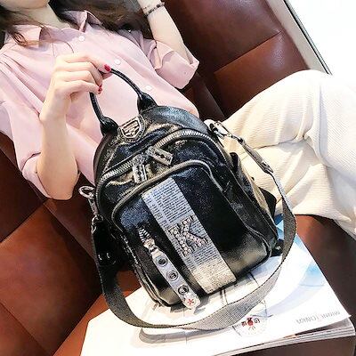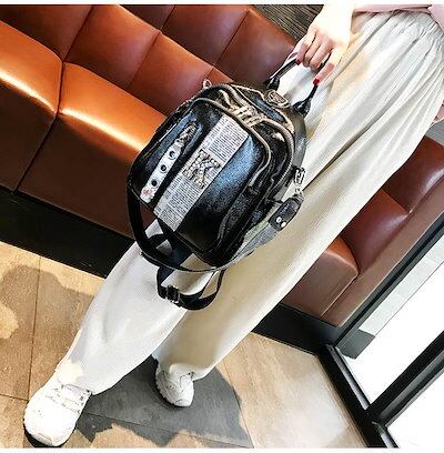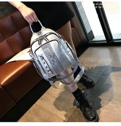 お買い得2色 リュック リュックサック シンプル K インパクト 大きめ 大き目リュック シンプル 煌びやか 柄 プリント バッグ レディース ジッパー 遠足 登山 山登り 学生 ブラック シルバー