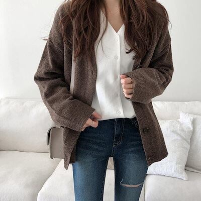 ニットカーディガン レディース アウター 秋冬 新作 ショートニット Vネック 羽織り