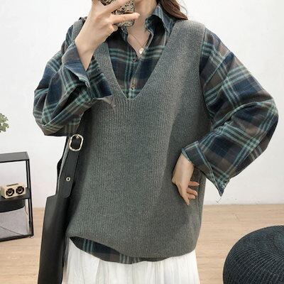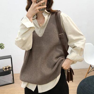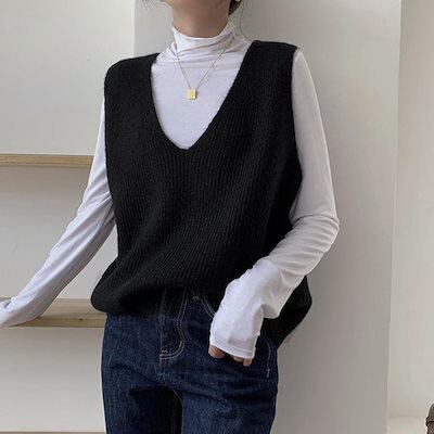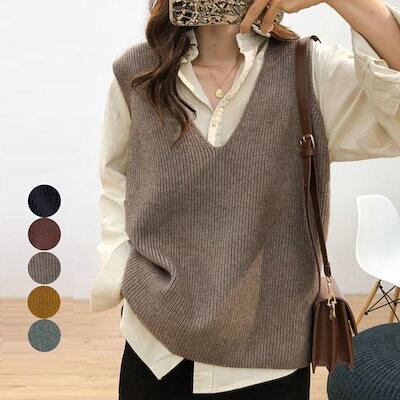 リブニットベスト レディース vネック