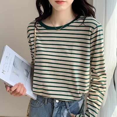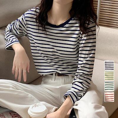 ロングスリーブトップス ボーダー柄tシャツ 長袖カットソー 春秋人气 新作