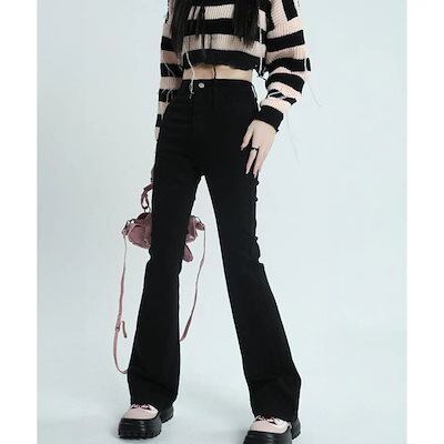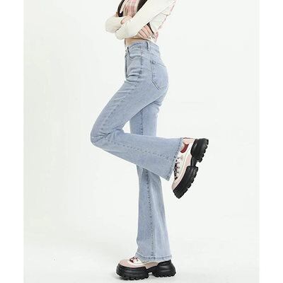 人気スラックスパンツ セミフレアデニムパンツ 美脚デニムパンツ