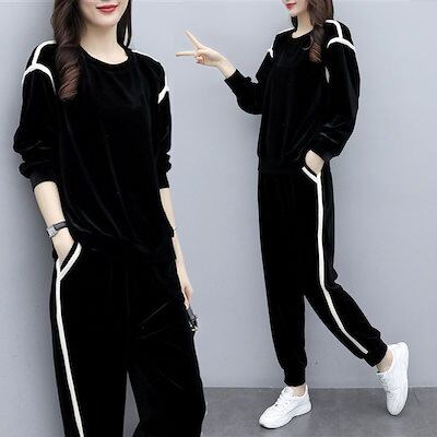 人气新作 2点セットニットセットアップ セットアップ ファッションカジュアル ゆったり 2点セット ベルベット スウェット上下セット
