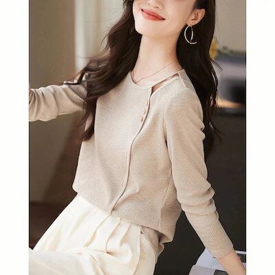 人气新作韓国ファッションロンT 秋 新しいスタイル シンプル 薄手長袖 Tシャツ着痩せゆったりスウェット修身トップスシャツ レディース