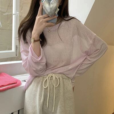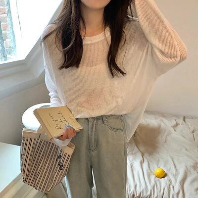 【人気商品】カーディガン サンスクリーンシャツ長袖シンプルな緩いTシャツ女性 OL 通勤 夏やや透明底シースルートップス