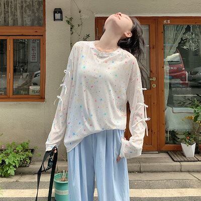 2024新入荷カーディガン シースルートップス 蝶ネクタイカラフルな星長袖Tシャツ OL 通勤 新しい夏薄いセクション日焼け止めスモックトップス