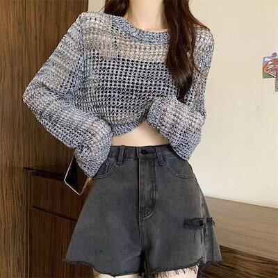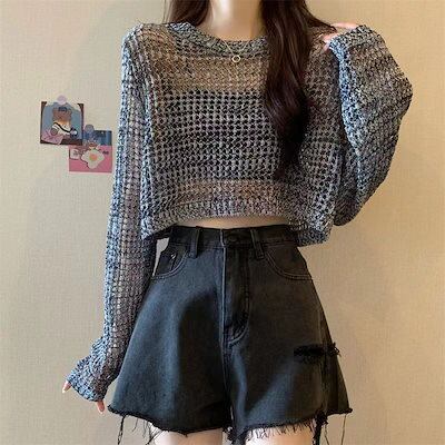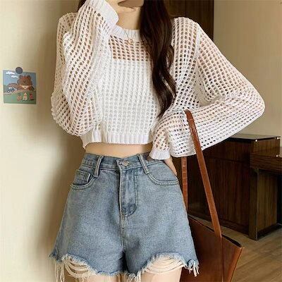 【人気商品】カーディガン ホローアウトニットウェア新しい OL 通勤 薄いセクション緩い日焼け止めスモックショートトップス