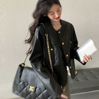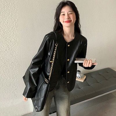 2024 新 ライダースジャケット秋アウター ゆったり ショート pu レザージャケット 韓国ファッション 流行り トップス ショット丈 革ジャンレディース 着痩せ秋ジャケット