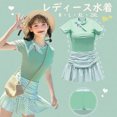 ワンピース水着 リボン 服みたいな 水着 チェック柄 半袖 ワイヤーなし パッド付 レディース 着?せ シンプル セクシー 写真映え 撮影用 海 夏 サマー プール リゾート かわいい 透け感あり 旅